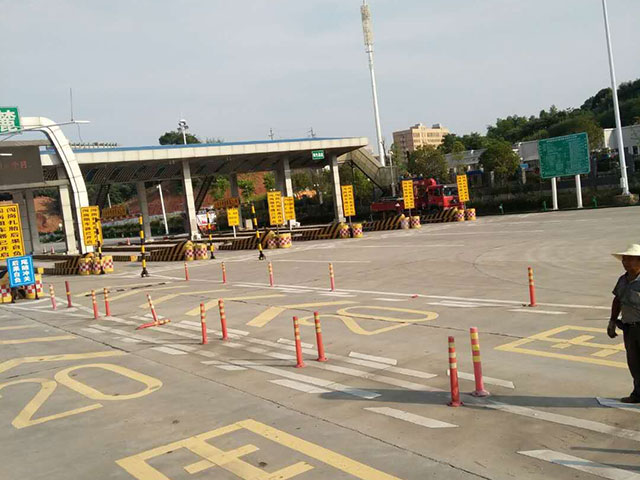 長(zhǎng)韶婁岳麓收費(fèi)站隨車(chē)吊做最后信號(hào)燈安裝